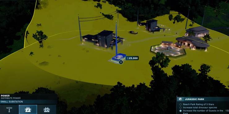 Starting with the original Jurassic World Evolution, the most important thing players have to remember to keep their parks running smoothly is to make sure all of their buildings are connected to walkways and to a power source. The first title presented a system of power plants, substations and supports to evenly distribute electricity to all buildings and fences they needed. Players could see where the power is being distributed with the help of the yellow circle where buildings and parts of fences had to be placed in order to connect to it. In the future, this is with