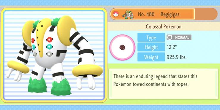 Most of the legendaries found in Brilliant Diamonds and Shining Pearls were used to flesh out the post-game content of the title, just as Mewtwo was red and blue many years ago, and stick to players long after. Providing a compelling reason to be Sinnoh's latest Pokemon Champion. Regigigas is just one of many Pokemon players can get after defeating Cynthia, but catching it requires a great deal of leg work on their part.